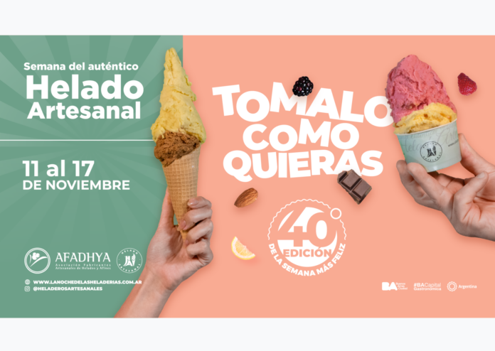 La Asociación Fabricantes Artesanales de Helados y Afines (AFADHYA) celebra la 40º edición de la Semana del Auténtico Helado Artesanal que se llevará a cabo del 11 al 17 de noviembre en todo el país. Además, con el antecedente de que en su 30° edición la Legislatura Porteña declaró de Interés Cultural a esta semana especial, este año se suma la reciente Declaración de Interés de la Ciudad Autónoma de Buenos Aires para el Desarrollo Económico y la Cultura a La Noche de las Heladerías, que se celebrará el miércoles 13 de noviembre. En esta edición tan especial, la entidad distinguirá a heladerías artesanales históricas del país con más de 60 años de trayectoria.