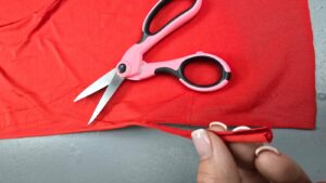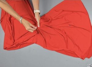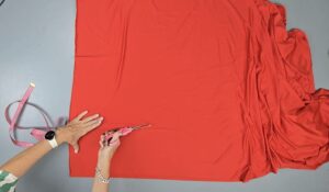 “Les presento la tela microfibra con lycra, en este caso, color rojo. Lo que vamos a hacer primero, es doblarla por la mitad. Hacer coincidir los bordes, que vienen de fábrica, porque después lo vamos a retirar, por supuesto. Es decir que, me queda el doblez de este lado. ¿Qué es lo quiero obtener? Básicamente, esto. Dos orificios en lugares específicos…”, puntualiza la experta explicando en el video N° 654, que tiene más de 482 mil visualizaciones en un solo año.