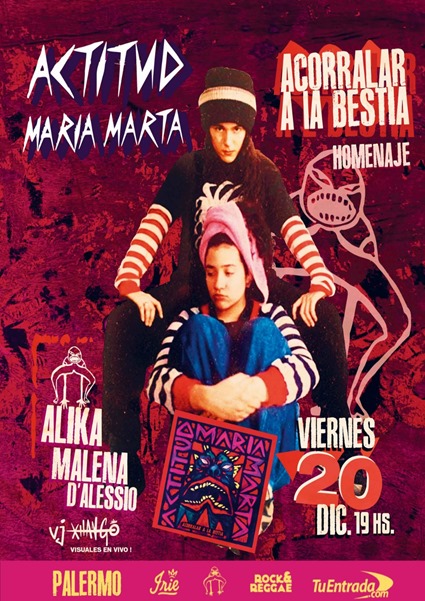 ACTITUD MARIA MARTA se presenta el viernes 20 de Diciembre, a las 19 hs, en Groove, Av. Sta. Fe 4389 de la Ciudad de Buenos Aires.