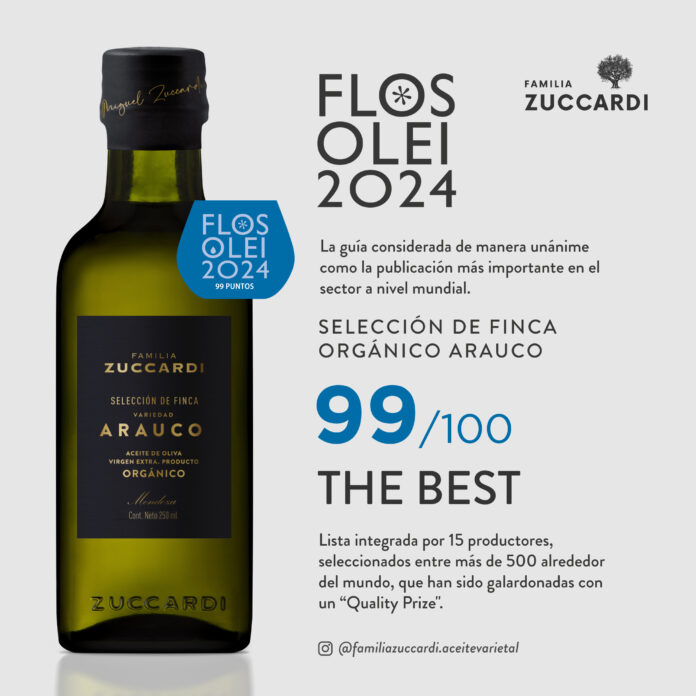 La tradicional guía italiana de referencia mundial, Flos Olei 2024 le otorgó 99 puntos, destacando su frescura, intensidad y complejidad, así como distinguiendo la calidad del aceite a partir de su sistema de extracción en base a vacío desarrollado y patentado en Argentina de uso exclusivo por la oleícola Zuccardi.