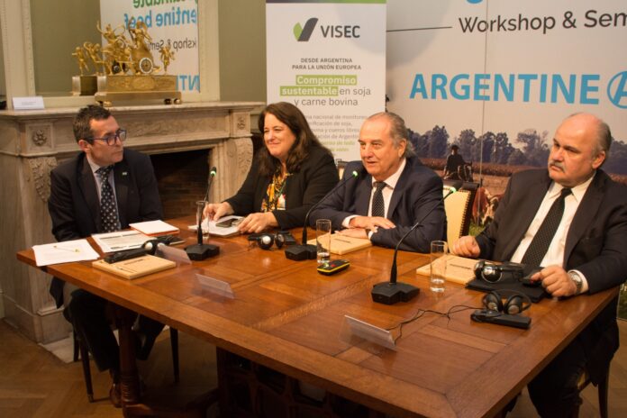 La cadena de ganados y carnes, nucleados en el Instituto de Promoción de la Carne Vacuna Argentina (IPCVA), presentó el lunes 3 de junio, en la residencia de la Embajada argentina ante la Unión Europa en Bruselas, un sistema que permite cumplir la exigencia de la UE integrado a la plataforma VISEC (Visión Sectorial Gran Chaco). Esta herramienta innovadora, desarrollada para asegurar la trazabilidad y certificación de productos libres de deforestación y del que participa toda la cadena de ganado bovino, garantiza que los embarques que lleguen a los mercados europeos provendrán de establecimientos ganaderos no deforestados, en cumplimiento con el Reglamento (UE) 2023/1115 (EUDR) de la Unión Europea, aprobado a mediados de 2023 y que entrará en vigencia el 30 de diciembre de 2024.