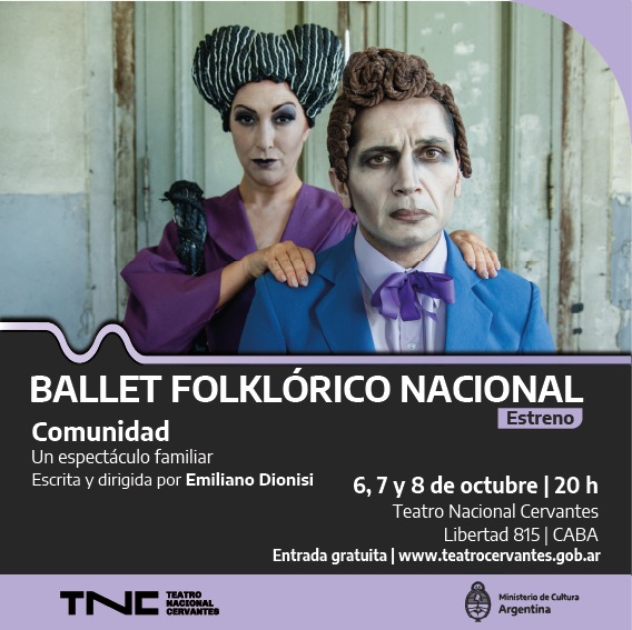 El Ballet Folklórico Nacional los invita a disfrutar del estreno de la obra Comunidad, un espectáculo familiar, que se realizará los días 6, 7 y 8 de octubre a las 20 h en el Teatro Nacional Cervantes.