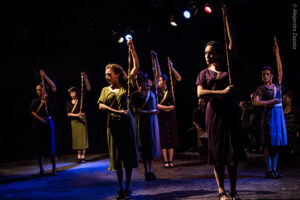El último cuadro es “La batalla”. Con música y baile jondo se representa a las mujeres en el frente, ya en lucha. El desenlace es conmovedor y esperanzador al mismo tiempo.