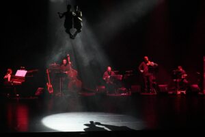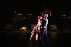 Los bailarines suspendidos en sogas y arneses crean una nueva forma de espacialidad y un cúmulo de nuevas posibilidades para el tango; sin perder la sensualidad, la nostalgia, el humor y la fuerza expresiva del mismo.