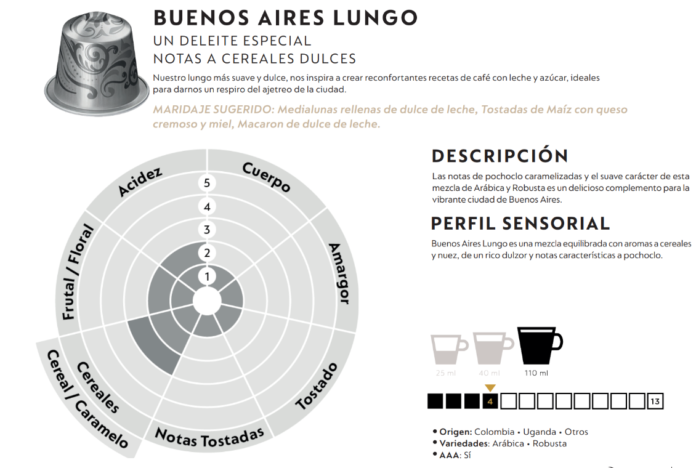 Inspirado en el estilo de consumo de café de los argentinos, Nespresso impulsa su variedad de café “Buenos Aires Lungo”, en el que se perciben el amor por lo dulce, fusionando granos de arábica colombiano suavemente tostados con el robusta ugandés para brindar notas con características a cereales y pochoclo dulce.