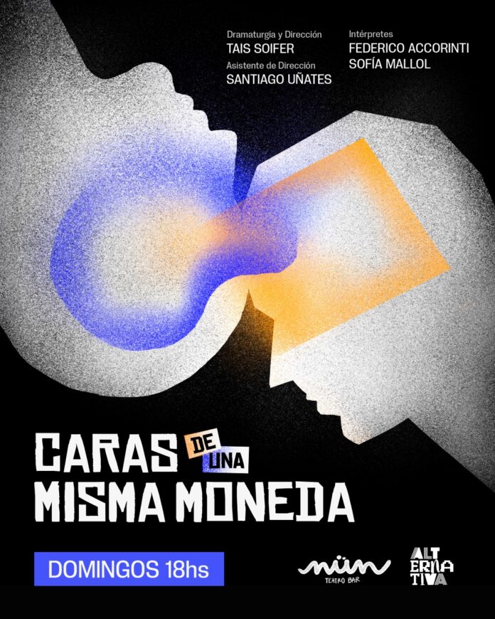 Con dramaturgia y dirección de Tais Soifer, se está representando “Caras de una misma moneda”, los domingos a las 18 horas, en la sala Nun Teatro Bar, calle Juan Ramírez Velasco 419, CABA.
