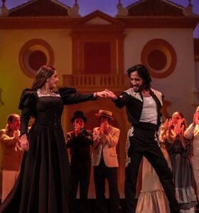 Es que la versión flamenca del nativo de Lomas de Zamora resignifica a la valiente gitana y rinde homenaje a sus raíces sevillanas. Un atractivo y colorido espectáculo con cuarenta artistas en escena, entre bailarines y músicos y cantaora en vivo.