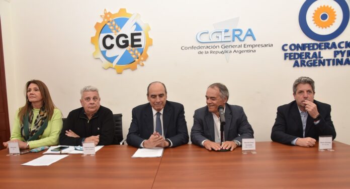 Empresarios de la Confederación General Empresaria de la República Argentina (CGERA), la Confederación General Económica (CGE), la Confederación de Comercio y Servicios (CGCyS), la Federal Pymes y las Cámaras y Federaciones asociadas, recibieron este jueves al Jefe de Gabinete de Ministros Guillermo Francos.