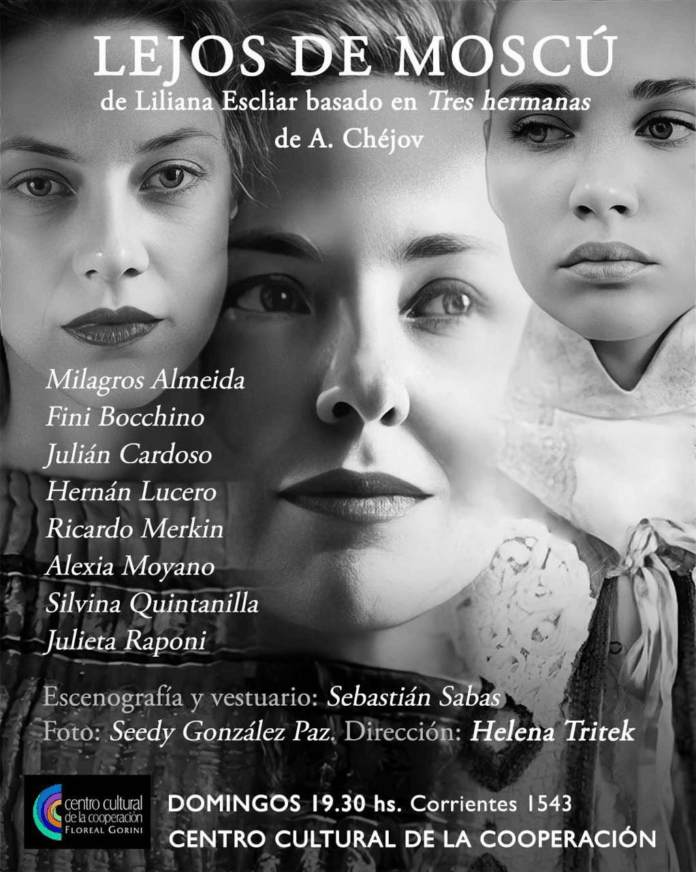 “Lejos de Moscú”, en versión de Liliana Escliar sobre el clásico de Antón Chéjov y con dirección de Helena Tritek, tendrá su estreno el domingo 19 de octubre a las 19:30 horas, en la Sala “Solidaridad” del Centro Cultural de la Cooperación, en Avenida Corrientes 1543, CABA.