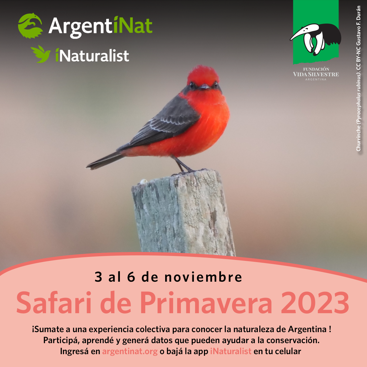 Fundación Vida Silvestre invita a participar del último evento de ciencia ciudadana del año, el Safari de Primavera 2023, que se llevará a a cabo en todo el país mediante ArgentiNat.org, el nodo argentino de la plataforma iNaturalist.