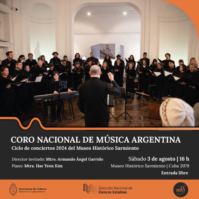 La Secretaría de Cultura del Ministerio de Capital Humano, tiene el agrado de anunciar el concierto que ofrecerá el Coro Nacional de Música Argentina, el día sábado 3 de agosto a las 16 horas, en el Museo Histórico Sarmiento de la Ciudad Autónoma de Buenos Aires, bajo la dirección del Mtro. Armando Ángel Garrido como director invitado y acompañados por la Mtra. Hae Yeon Kim en piano.