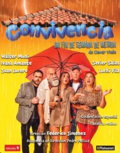 Hoy, “Convivencia, un fin de semana de mierda” está en la cartelera teatral porteña de la mano de los multifacéticos actores Walter Muni y Juan Lucero, en los roles protagónicos y un elenco conformado por Ivana Amante, Javier Salas y la debutante Luchi Vila (se luce en los pocos minutos en escena), con dirección del talentoso quilmeño Federico Jiménez.