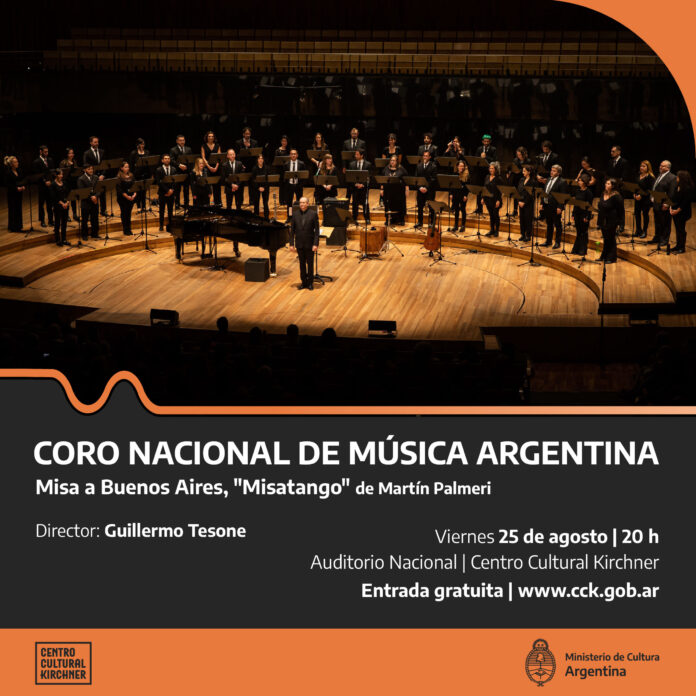 La Dirección Nacional de Elencos Estables del Ministerio de Cultura de la Nación, anuncia el concierto que brindará el Coro Nacional de Música Argentina, el próximo 25 agosto a las 20 horas, en el Auditorio Nacional del Centro Cultural Kirchner, bajo la dirección del Maestro Guillermo Tesone y como solista la coreuta Paula Bresci.