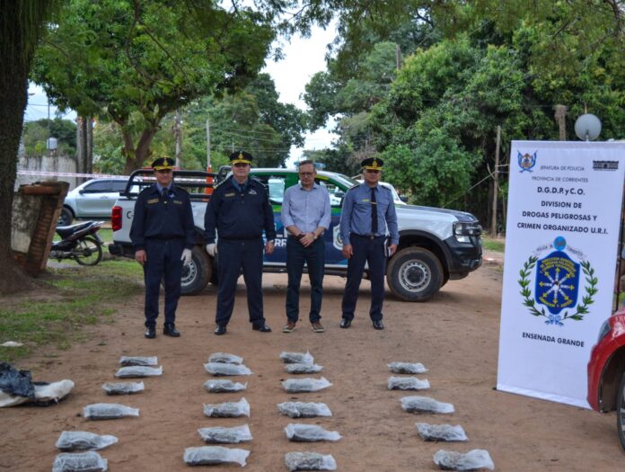 Esta tarde, la Policía de Corrientes Incautó en el Barrio Cremonte 72 kilos de Marihuana tras una persecución a dos vehiculos, y luego en uno de ellos se halló 4 bultos donde estaba dicho cargamento, siendo detenido su conductor, en tanto que a pocos del lugar fueron demorados también cinco personas más que iban en otro vehículo.