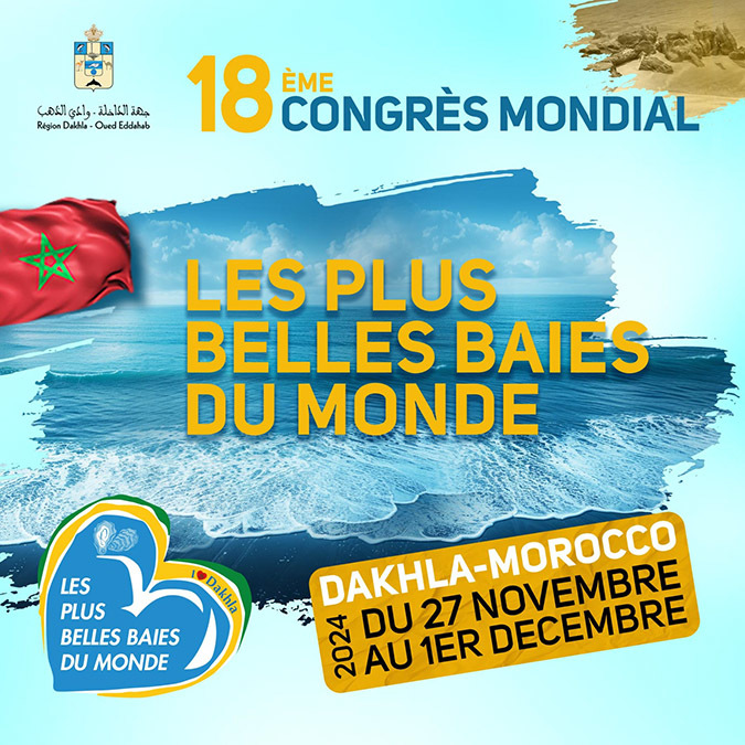 La ciudad de Dajla será la sede del 18º Congreso de la Asociación de las Bahías Más Bellas del Mundo, que se celebrará entre los próximos días 27 de noviembre y 1 de diciembre de 2024. Una edición que va a ser aún más excepcional, ya que por primera vez se celebra bajo el Alto Patrocinio del Rey Mohamed VI.