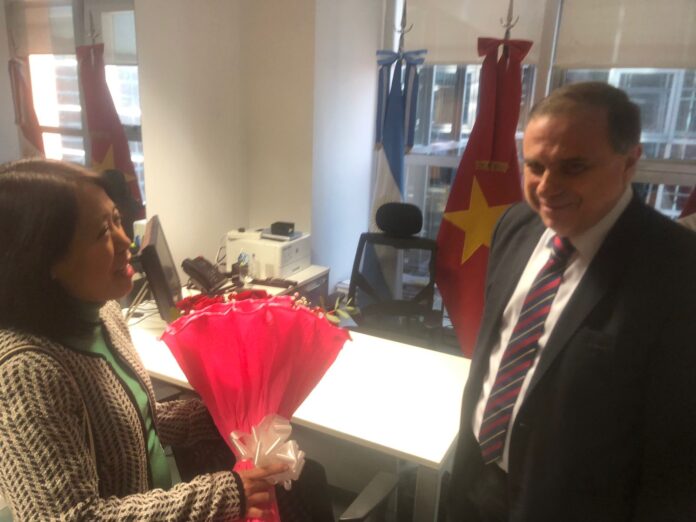 El pasado 10 de julio, el Diputado Nacional de la Democracia Cristiana que integra el Bloque Hacemos por Argentina, Juan Fernando Brügge tuvo el honor de recibir a la Embajadora de la República de Vietnam, Sra Minh Nguyet Ngo, en una visita que promete desarrollar aún más la profundización de la colaboración social, cultural y económica entre Argentina y Vietnam.