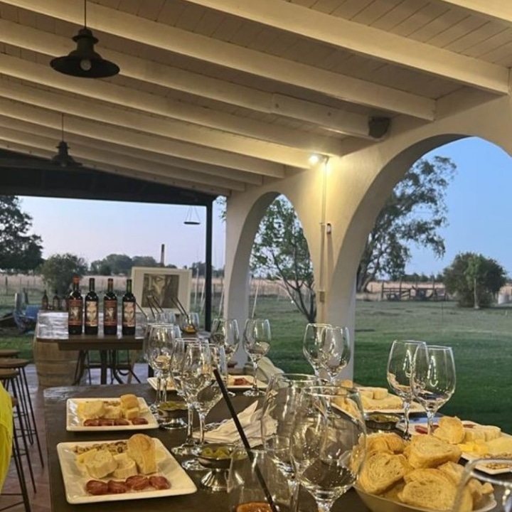En la chacra realizan catas guiadas, maridajes con sabores regionales y degustación de la carne típica florense: cazuela de cordero al malbec con papines y empanadas fritas en grasa dentro de una olla antigua.