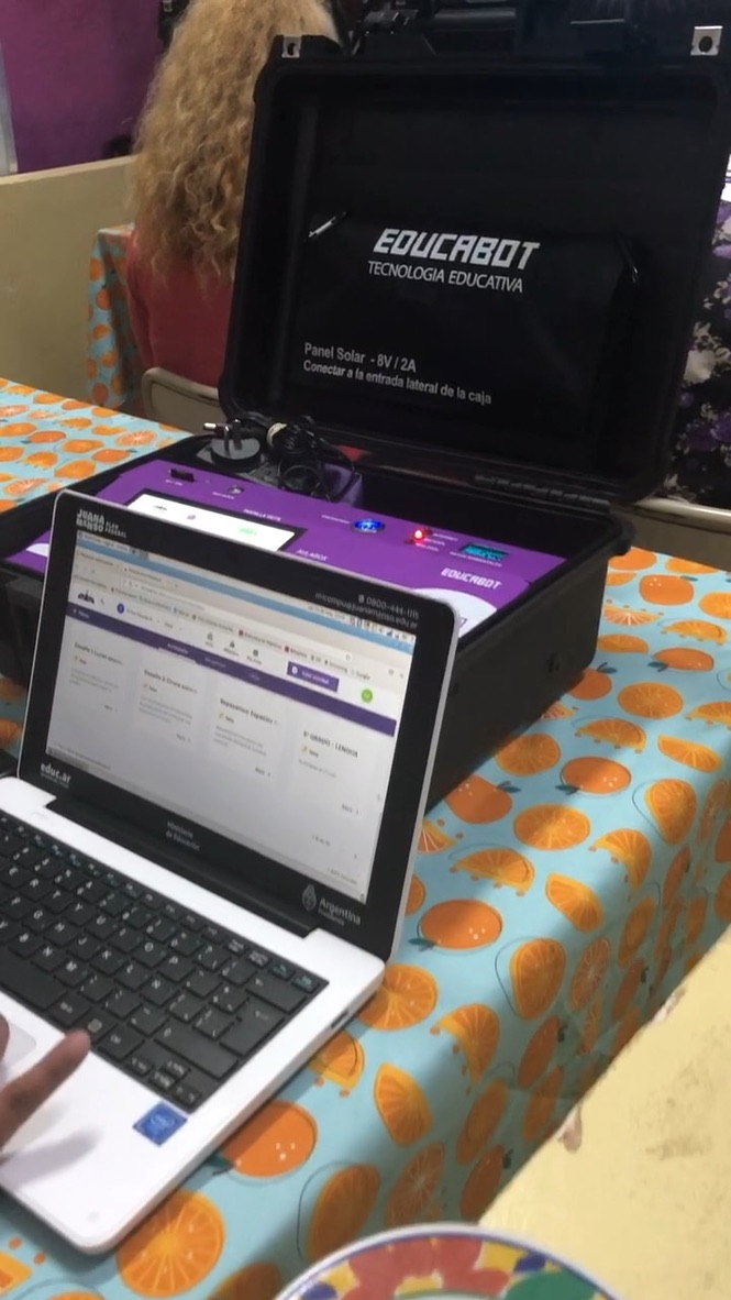 Ante este escenario, Educabot diseñó un maletín que crea un punto de acceso para conectar múltiples dispositivos móviles o netbooks de los estudiantes a una red WiFi, a través de la cual se pueden compartir contenidos y mantenerse conectados a un servidor pedagógico. Atendiendo las dinámicas de la educación rural, el maletín cuenta con una batería de alta duración que permite trasladarlo y trabajar también fuera del aula, dado que trabaja sin necesidad de cableados ni antenas.