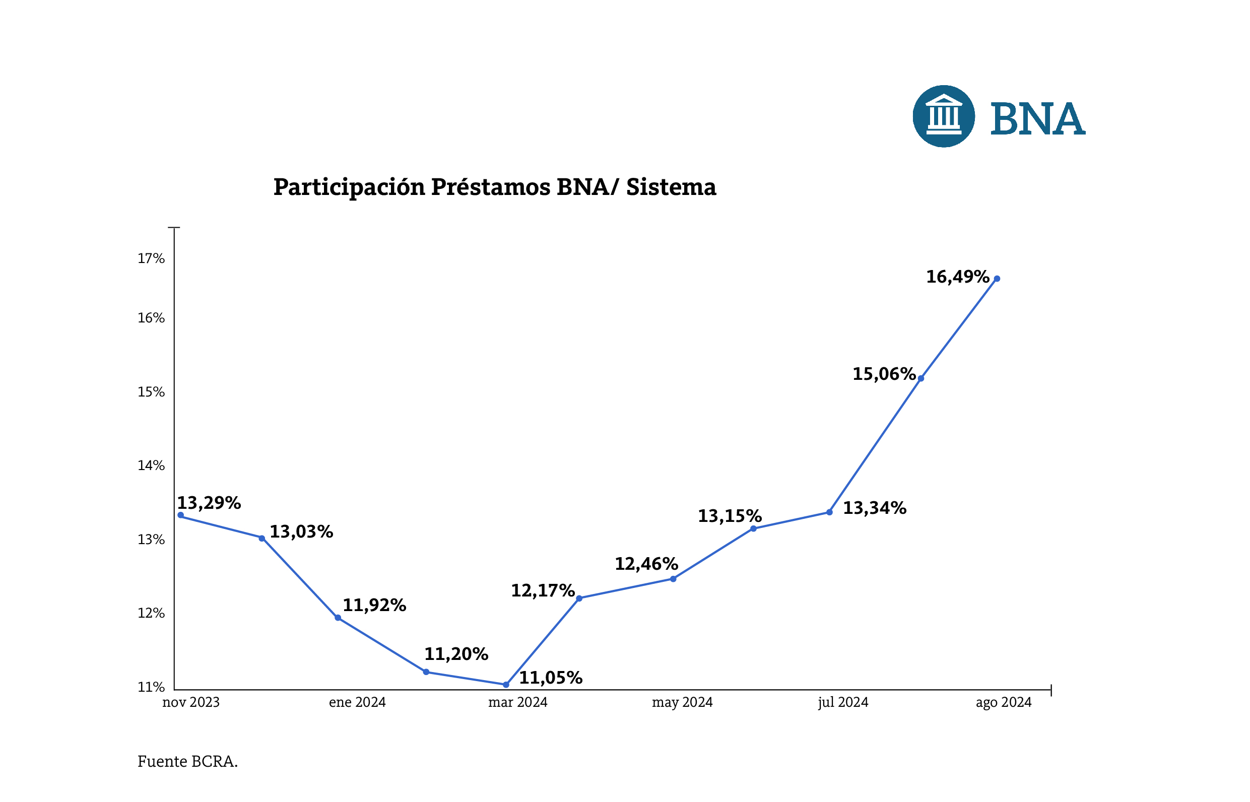 El BNA consolida su liderazgo con un crecimiento vertiginoso en el mercado de préstamos totales
