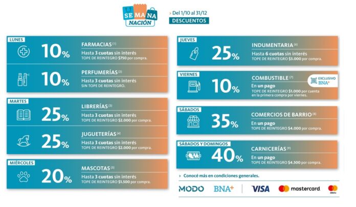 Banco Nación extendió hasta fin de año el descuento del 40% para las compras