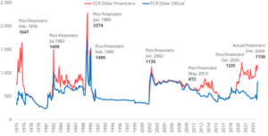 Medido en términos reales, el tipo de cambio financiero se mantiene en niveles similares a la previa de la hiperinflación.