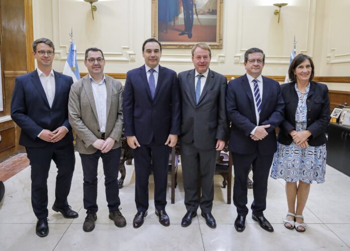 El gobernador Gustavo Valdés recibió este sábado en su Despacho de Casa de Gobierno, a los embajadores en Argentina: de Alemania, Dieter Lamlé; y de Irlanda, Gerard McCoy. En referencia al encuentro contó que “abordamos una agenda común en pos de fortalecer lazos bilaterales, explorar posibles colaboraciones en tecnología, turismo y producción, como también oportunidades de inversión y proyectos conjuntos”.