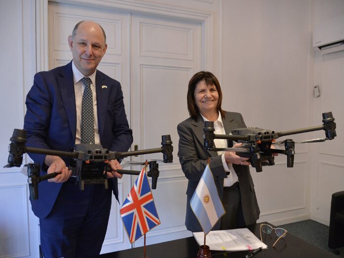 (*) Se adjunta fotografía de Sir Philip Barton y la ministra Bullrich durante la entrega de los drones.