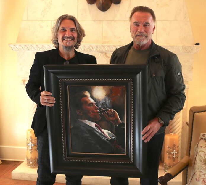 “Arnold organiza un evento anual en su casa. Se trata de un remate benéfico de diferentes objetos. Desde su auto Hammer, pasando por la moto que usó en ‘Terminator’, hasta indumentaria que utilizó en otros largometrajes. También hay gente que contribuye con objetos de mucho valor, como relojes y autos de alta gama”, relata el oriundo de Campana, que reside y tiene su galería de arte en Melrose Art District, Los Ángeles, Estados Unidos.