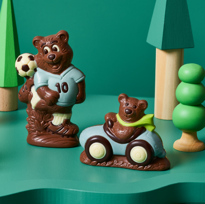 A su vez, entre las ya clásicas figuras de chocolate con leche y chocolate blanco existe la variedad de oso con auto, oso con pelota, perrita, gatita, tortuga, muñeco de nieve y pelota.