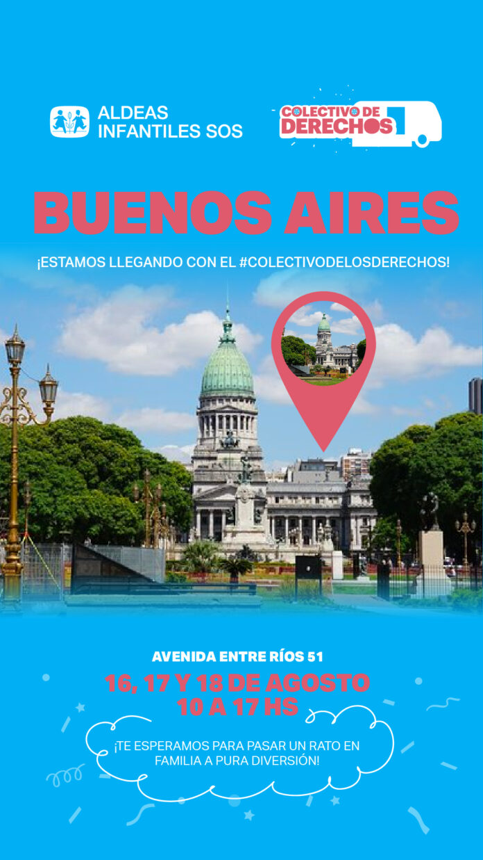 Del 16 al 18 de agosto hace su tercera y última parada en la Plaza del Congreso, en la Ciudad de Buenos Aires (Av. Entre Ríos 51), donde se desplegará un stand móvil para que todas las familias puedan acercarse y, de una manera lúdica, conocer y aprender sobre los derechos de las Infancias. A partir de juegos de preguntas y respuestas, los participantes, tanto niños como adultos, podrán involucrarse activamente en el aprendizaje y la toma de conciencia sobre la importancia de proteger y respetar sus derechos. También, habrá regalos y mucho más. ¡Los/as esperamos de 10 a 17hs.!