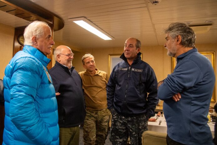 En el marco del viaje a la Antártida, los ministros de Defensa, Jorge Taiana, y de Ciencia, Tecnología e Innovación, Daniel Filmus, a bordo del rompehielos ARA “Almirante Irízar”, navegaron desde la base Marambio hacia Petrel, donde supervisaron los avances en las distintas obras de reconstrucción, y anunciaron la creación de un cuarto laboratorio multidisciplinario que se instalará en esta estación.