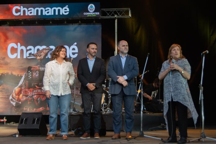 En un impasse de la música, se llevó adelante el acto de presentación de la 34ª Fiesta Nacional del Chamamé. El mismo fue encabezado por la presidenta del Instituto de Cultura de Corrientes, Beatriz Kunin, y por la ministra de Cultura de CABA, Gabriela Ricardes, quienes estuvieron acompañadas en el escenario por el intendente de Ituzaingó, Juan Pablo Valdés, y el agregado cultural de Paraguay, Rodolfo Serafini.