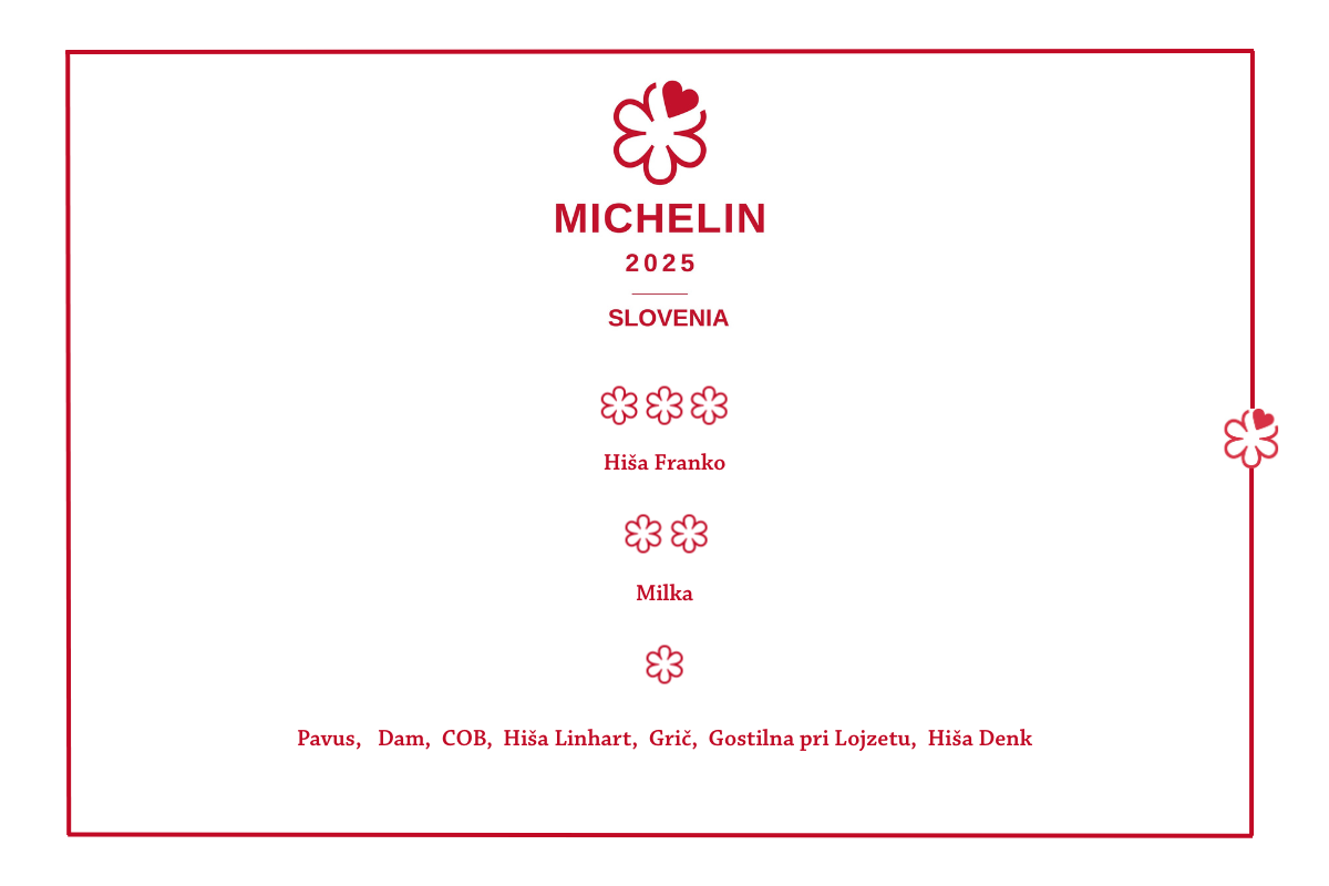 Por tercer año consecutivo, el restaurante Milka , del chef David Žefran, mantuvo su estatus de dos estrellas. Siete restaurantes obtuvieron una estrella Michelin: