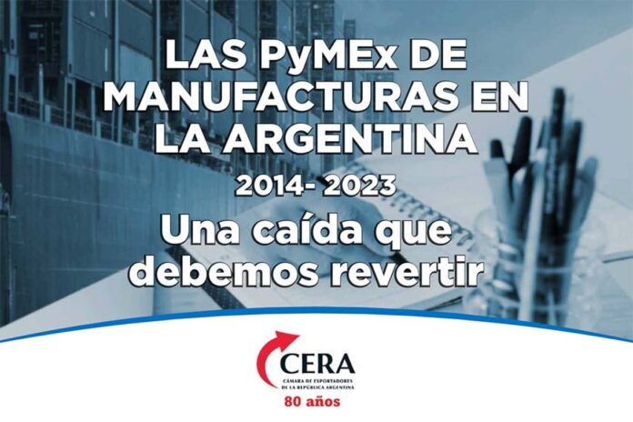 La Cámara de Exportadores de la República Argentina (CERA) presenta su último informe “Las PyMEx de manufacturas en la Argentina 2014–2023. Una caída que debemos revertir” que analiza el desempeño exportador de la Argentina durante los últimos diez años, con mayor énfasis en 2023, y abordando en particular el comportamiento de las PyMEx de manufacturas.