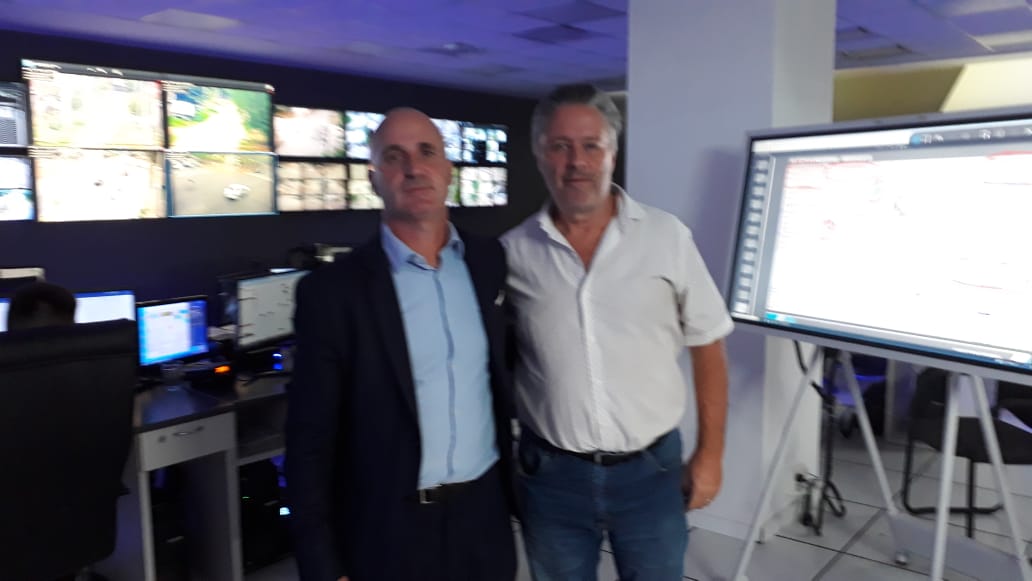 Fabián Guana viajó a San Miguel para recorrer con Joaquín de la Torre el COM y tener una visión más apliada sobre los programas de seguridad que se implementan en otros distritos.