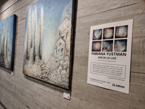 Sin poder disimular la emoción, Yustman agregó: “en casi todas estas obras hay también figuras que sugieren flores, plantas y árboles. En ‘Hacia la luz’ simbolizan para mí, la realización personal: el florecer y crecer. Trasladado a la situación de guerra, significaría resiliencia. Darse el permiso para sonreír nuevamente y volver empezar. La luz está en algún lugar del camino, solo hay que encontrarla. Yo la encontré cuando descubrí mi pasión. Y deseo para todos, una luz en vuestro camino”.