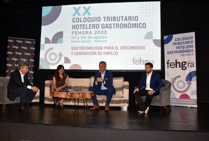 El acto de cierre del Coloquio estuvo a cargo del vicepresidente de la Federación, Rafael Miranda, responsable del Departamento de Política Tributaria; el vicegobernador de Misiones, Carlos Arce; el presidente de la Asociación Hotelera Gastronómica y Afines de Iguazú, Diego Bruno; y la presidente de la Asociación Argentina de Organizadores y Proveedores de Exposiciones, Congresos, Eventos y Burós de Convenciones (AOCA), Patricia Durán Vaca.