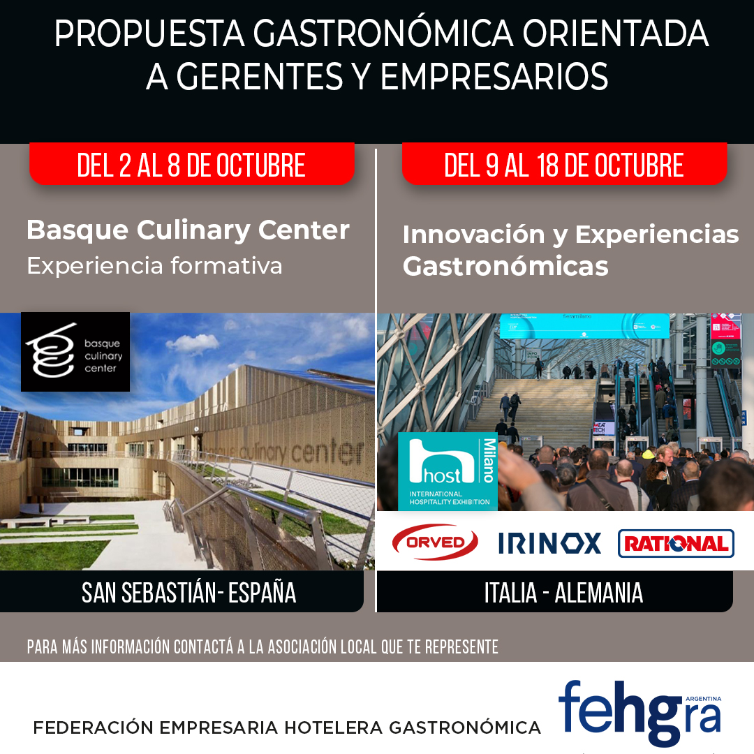 La Federación Empresaria Hotelera Gastronómica de la República Argentina (FEHGRA) informa que realizará el V Seminario de Actualización para Propietarios, Gerentes y Chefs de Restaurantes, diseñado exclusivamente para la entidad argentina por el prestigioso Basque Culinary Center (BCC), y focalizado en crear una experiencia educativa y profesional. Se llevará adelante del 2 al 8 de octubre de 2023, en la ciudad de San Sebastián, España. Reconocida internacionalmente por su excelencia en diseñar estrategias en materia gastronómica, el BCC contempla acciones de formación, actualización, investigación y promoción de la actividad.