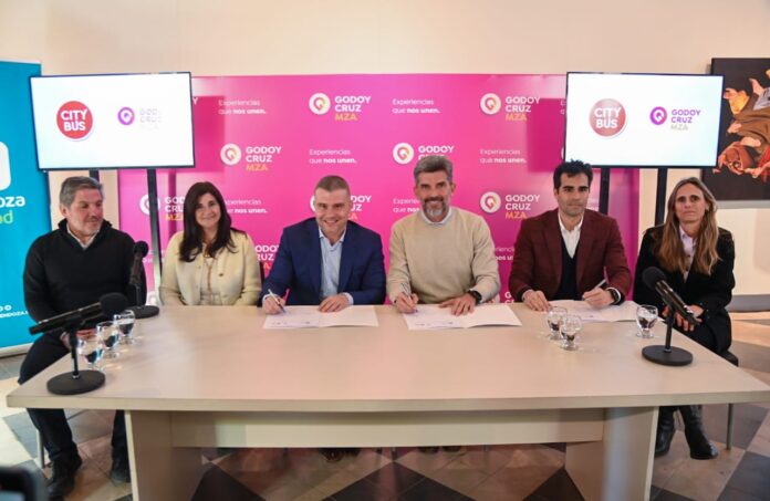 El convenio se suscribió para ampliar el recorrido del circuito del servicio Mendoza City Bus. El mismo, que actualmente recorre la Ciudad, se integrará con puntos de interés ubicados en Godoy Cruz.