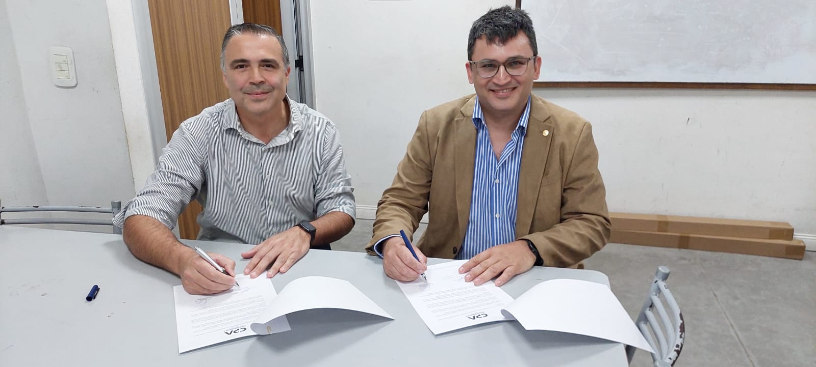 La firma del contrato de donación fue realizada por el Presidente del Consejo Superior del CPA, Agrim. Reinaldo Beain y el Jefe del Departamento de Agrimensura de la UNLP, Agrim. Leandro Soto.