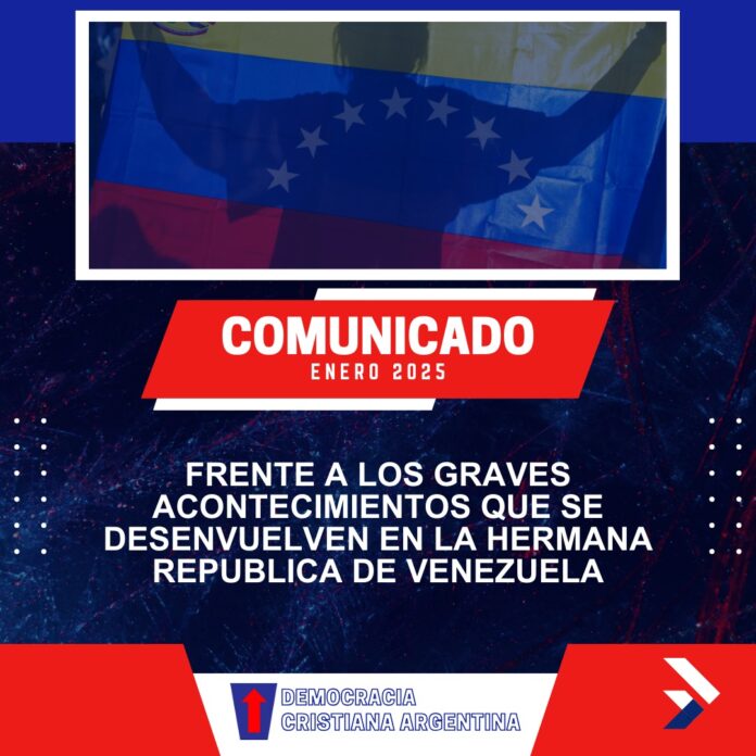 El diputado de la Democracia Cristiana Juan Fernando Brügge, impulsó un contundente comunicado de su partido, en un contexto de creciente tensión y crisis política en Venezuela, que refleja su firme postura frente a los acontecimientos que afectan a la hermana república. Esta declaración, propuesta del legislador cordobés integrante del bloque Encuentro Federal, fue firmada por el presidente del partido, Hugo Horvat, y la secretaria general, Verónica Granda Correa.