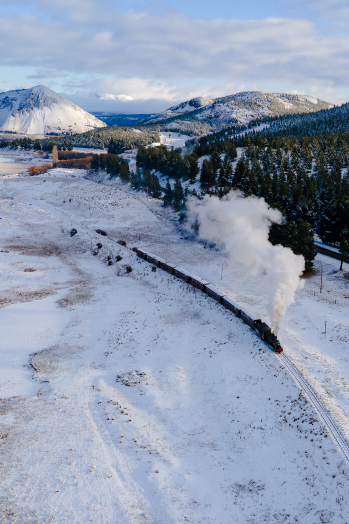 Durante el trayecto, quienes están a bordo pueden recorrer y explorar la formación, cruzando de vagón en vagón a través de puertas que rechinan con el paso del tiempo. Mientras el tren se mece al ritmo de la trocha angosta, los sonidos del viaje se entrelazan: murmullos en distintos idiomas, mezclados con las conversaciones de turistas nacionales, crean un mosaico multicultural que refleja la diversidad de quienes vienen a experimentar este monumento nacional. Al llegar al comedor, el visitante se acomoda en una de las mesas mientras el paisaje natural se despliega ante sus ojos como un desfile de postales paradisíacas. Saborear un chocolate caliente acompañado de un roll de canela, y en una de las más de 40 curvas del recorrido, se vislumbra la locomotora desafiando el viento, atravesando la nube de vapor, ofreciendo una imagen digna de una película que busca en el horizonte encontrar las sombras de los bandoleros Butch Cassidy y Sundance Kid.