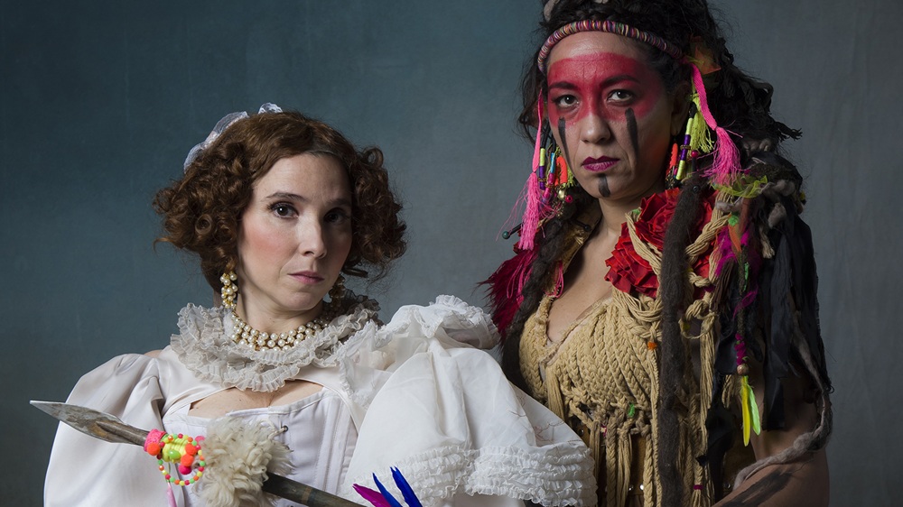 Las descomunales actrices, que despliegan sus talentos, a base de comicidad y reflexiones, son apoyadas (desde un costado del escenario) por el músico y compositor Ian Shifres (también con look afrancesado) que, con teclados, viento, cuerda y percusión (hasta su propia voz), dibuja el paisaje sonoro de la aventura, la pasión y el amor surgido entre la indígena y la europea.