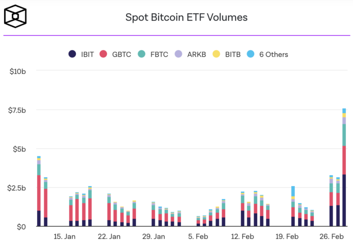 Si observamos la actividad del mercado, nos encontramos con un fenómeno impresionante: la adquisición de Bitcoin a través de fondos cotizados (ETF) ha alcanzado niveles sin precedentes. Diariamente, se registra un récord de compras que supera los 3 mil millones de dólares, evidenciando un interés masivo por parte de inversores institucionales y minoristas por igual. Este incremento sin precedentes en la demanda de Bitcoin ETF refleja la creciente confianza en la criptomoneda como una clase de activo legítimo y viable para diversificar carteras de inversión.