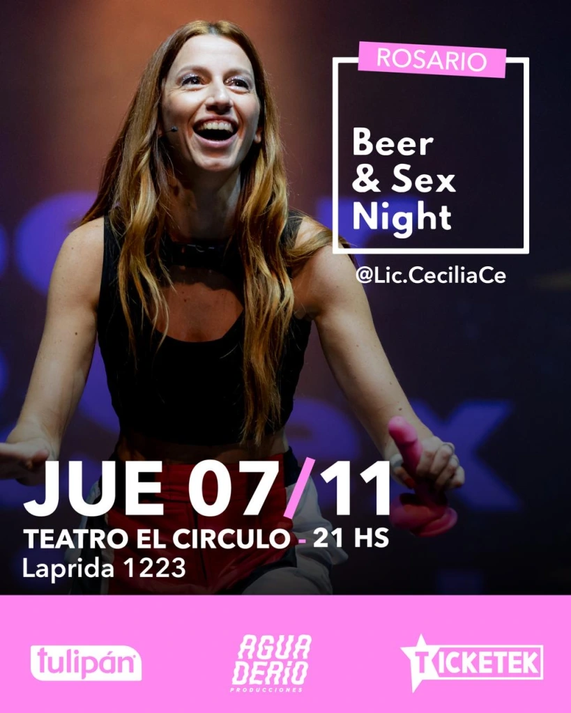 Beer&Sex Night, es un espectáculo pensado para derribar mitos, permitirse el goce y promover el ejercicio de la sexualidad plena. Combinando sexo, ciencia y humor con lenguaje directo y descontracturado, la Lic. abordará cuestiones de anatomía, estimulación tanto femenina como masculina, orgasmos, respuesta y posiciones sexuales.