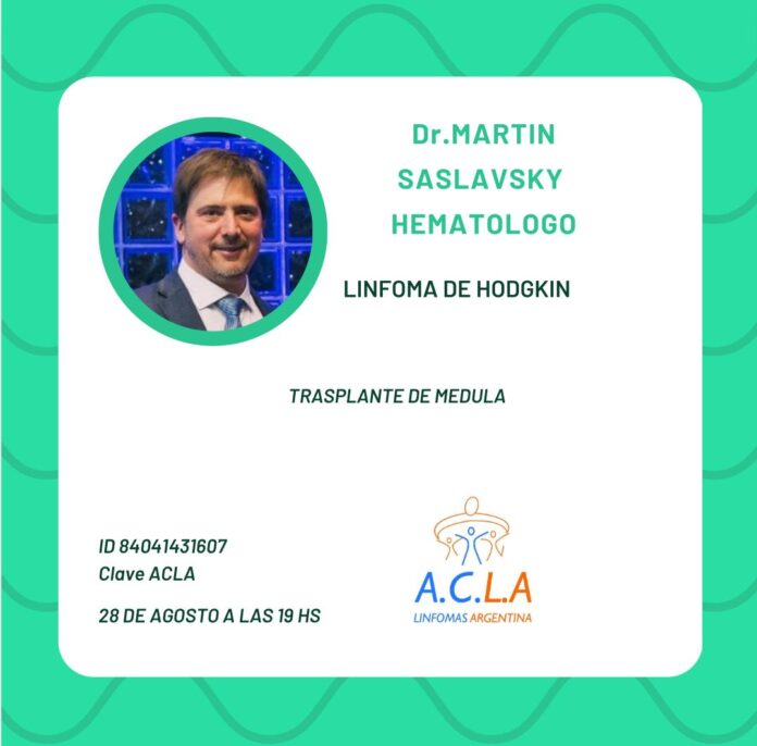 El éxito del tratamiento del linfoma de Hodgkin es del 90% si se detecta tempranamente. Por eso, ACLA organiza charlas informativas para aumentar la conciencia sobre esta enfermedad. El próximo miércoles 28 de agosto a las 19:00 horas, el Dr. Martín Saslavsky dará una charla sobre el linfoma de Hodgkin y el trasplante de médula ósea, proporcionando información crucial para pacientes y familiares. ID: 840 4143 1607 Clave: ACLA