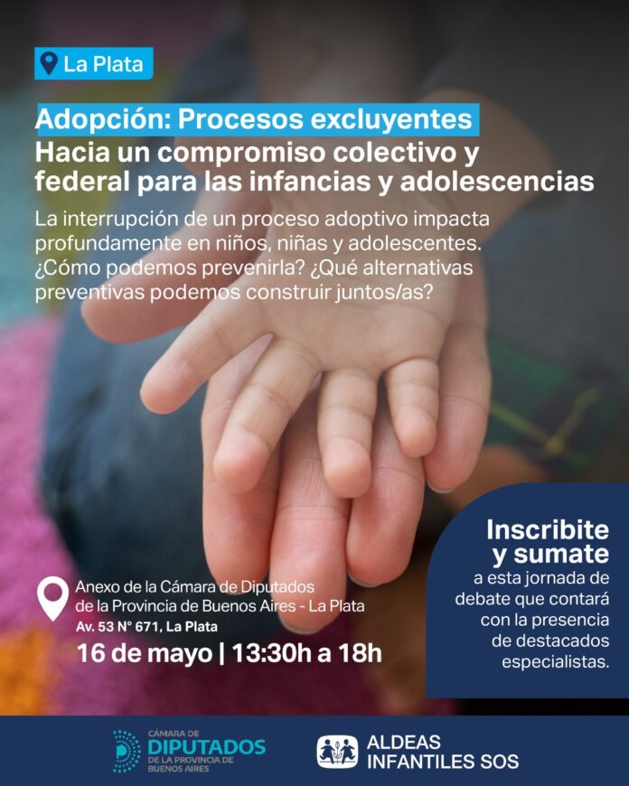 Aldeas Infantiles SOS Argentina, organización referente en atención directa y personalizada a las infancias y adolescencias, invita a la Jornada de Incidencia Pública “Adopción: Procesos excluyentes – Hacia un compromiso colectivo y federal para las infancias y adolescencias”, que tendrá lugar en la ciudad de La Plata el próximo 16 de mayo de 13:30h. a 18h. (Acreditaciones de 13:30h a 14h).