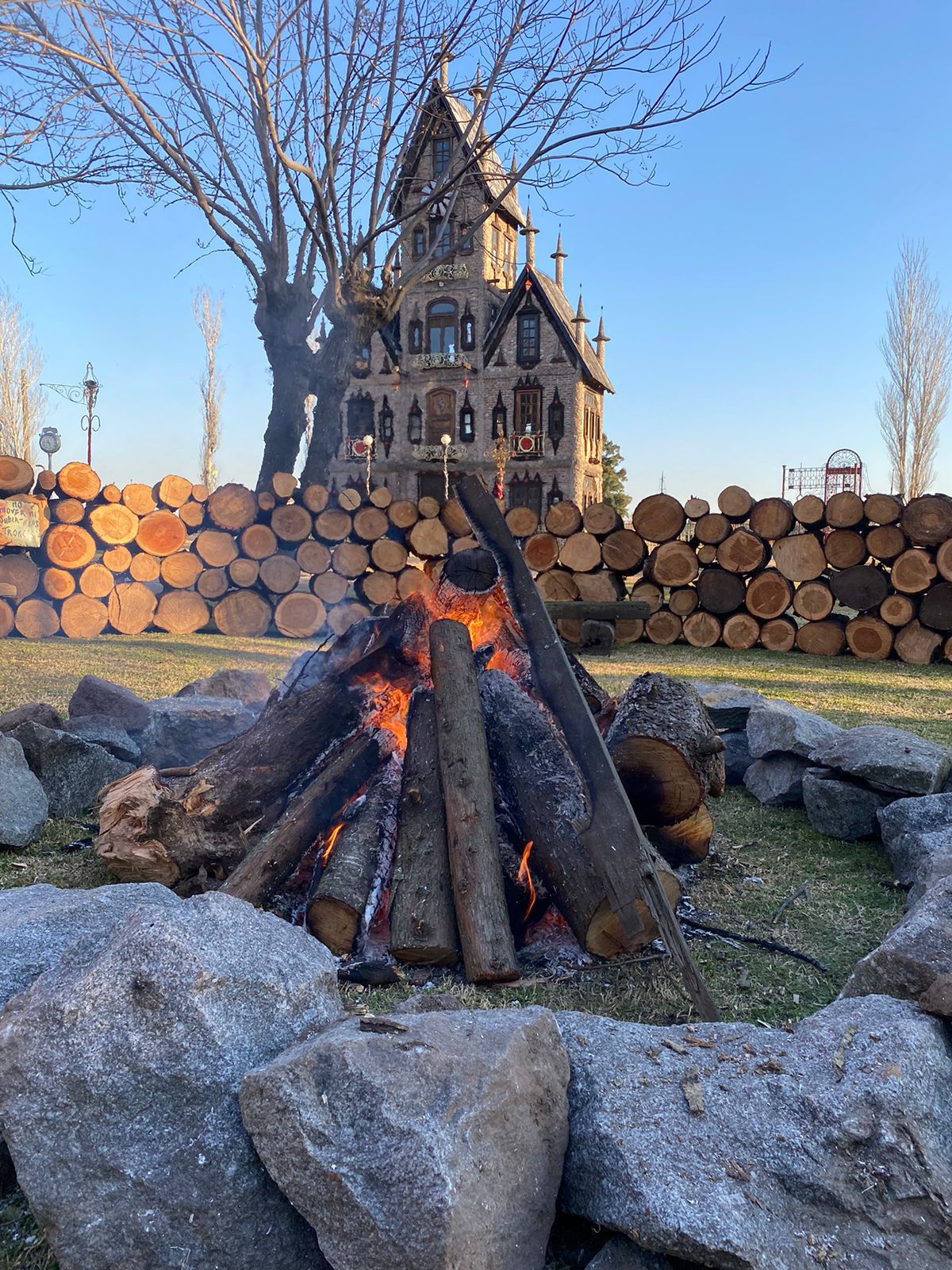 Como es la impronta/esencia de Campanopolis, los artesanos, restauradores y personal de mantenimiento reutilizaron esos árboles caídos para la construcción de bancos, mesas y hasta una fogonera de aspecto medieval. El reciclaje fue la idea central que guio a Antonio Campana, fundador de Campanopolis, a crear una obra de arte, convirtiéndose en pionero de una técnica que, años más tarde, se volvería popular.