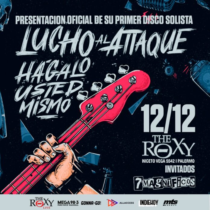 Luciano Scaglione, quien fuera bajista de la mítica banda Attaque 77, presenta “Hágalo usted mismo”, el primer disco de Lucho al Attaque, en The Roxy, Niceto Vega 5542, este jueves 12 de diciembre a las 21 hs.