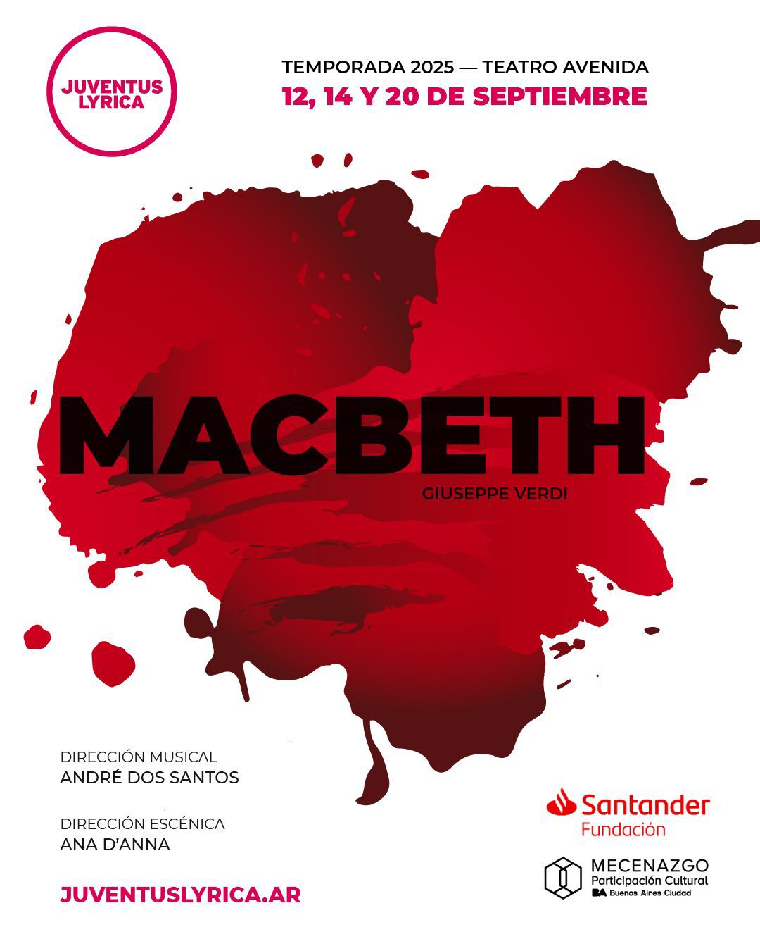 La obra llegará a escena de la mano musical del brasilero André Dos Santos (oportunamente a cargo de la dirección de Don Giovanni en la temporada 2023 de Juventus Lyrica) y de Ana D’Anna, directora artística de la institución. La escenografía e iluminación estarán a cargo de Gonzalo Córdova, mientras que el vestuario de María Jaunarena. El elenco reúne a grandes voces como Juan Salvador Trupia y Juan Font, alternándose en el rol principal, María Belén Rivarola en la famosa Lady, Mario De Salvo y Víctor Chávez, en el incólume Banquo, y Ramiro Pérez, que pondrá fin al drama, encarnando a Macduff. Las partes corales tan festejadas del compositor, estarán bajo la dirección de Pablo Manzanelli.